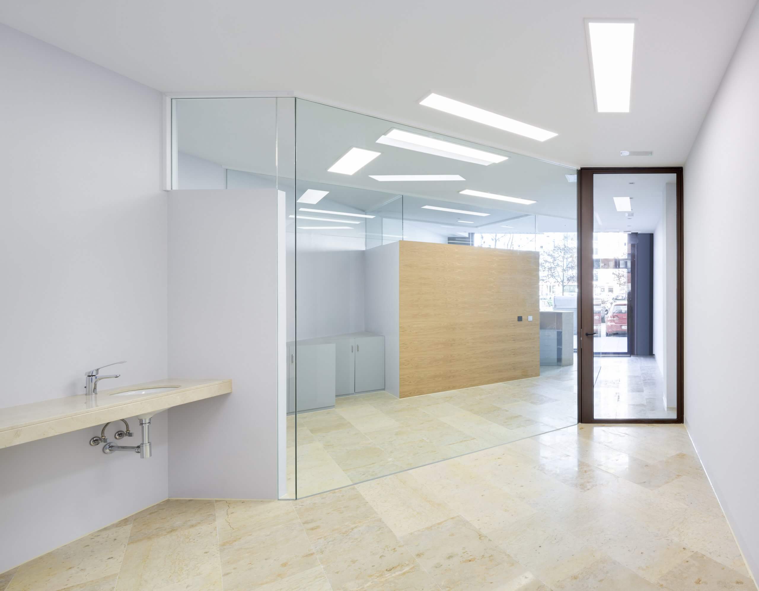 En síntesis, se ha creado un espacio interior organizado mediante muros de vidrio transparente, que transmiten la luz de extremo a extremo.